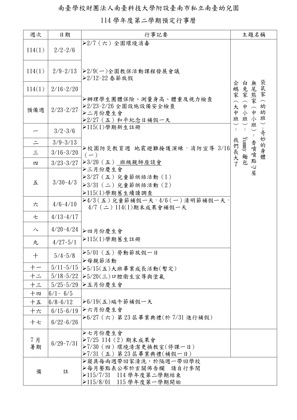 Copyright © 2018 南臺學校財團法人南臺科技大學附設臺南市私立南臺幼兒園